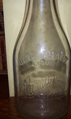 VINTAGE PRIMITIVE CLEAR LAMAR CREAMERY QT MILK BOTTLE