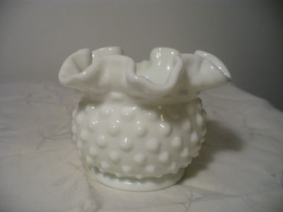 Fenton Hobnail Crimped Vase Milk-glass 1980s