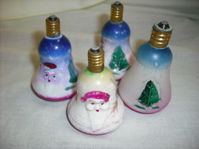 LOT/4 VINTAGE MILK GLASS SANTA/ HOLLY XMAS LIGHT BULBS!