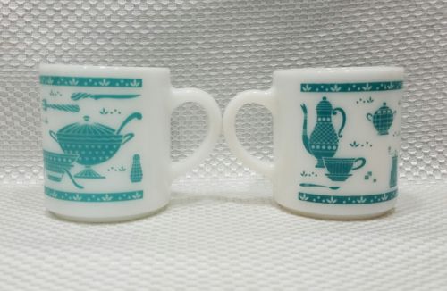 Title (ebay affiliate link): 2 Vintage Hazel Atlas Coffee Mug Cup Kitchen Utensil Milk Glass Turquoise