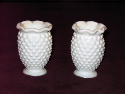 A PAIR OF VINTAGE HOBNAIL MILK GLASS VASES