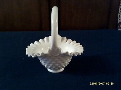 FENTON MILK GLASS HOBNAIL BASKET WITH RUFFLED EDGE