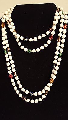 VINTAGE ESTATE LONG BEADED MILK GLASS NECKLACE 56" L ***GORGEOUS***