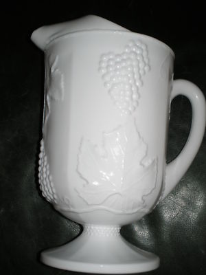 Vintage Indiana Panel Grape Milk Glass Pitcher, HUGE!!