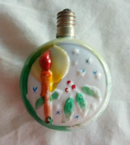 Antique Figural Milk Glass Christmas Light Bulb Wreath Candle Holly Berry
