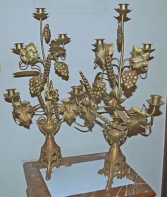 Pair of French Late 19th Century Candelabras, Gilt Bronze