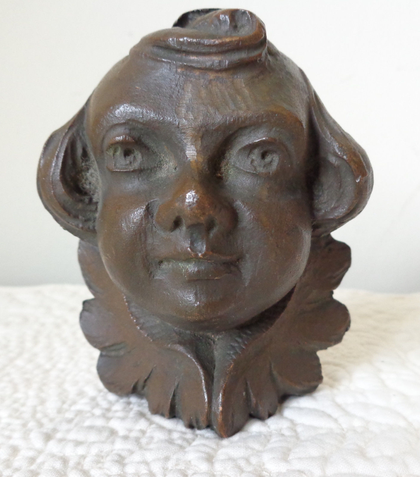 SMALL ANTIQUE SOLID BRONZE CHERUB HEAD