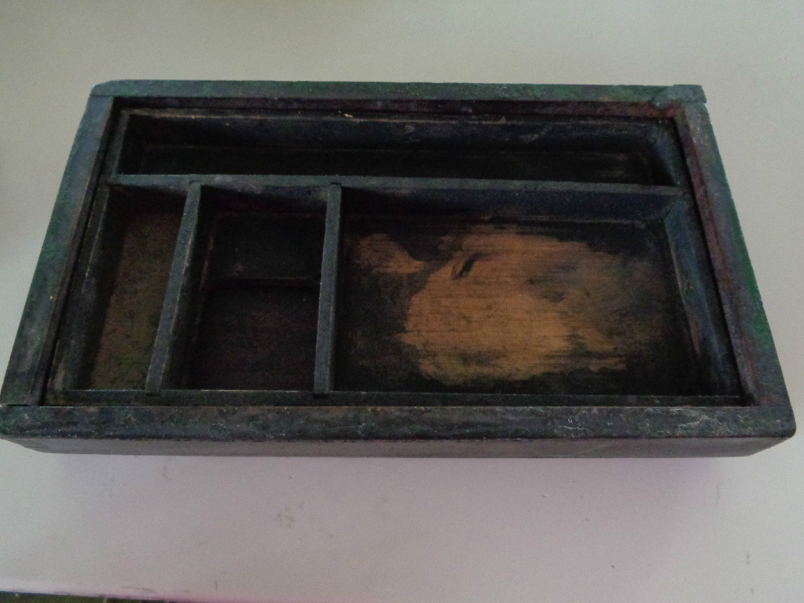 Title (ebay affiliate link): Vintage Black Green Divided Artists Box w/ Removable Tray 10.5" x 6" Primitive