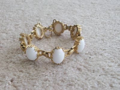 Vtg WEISS Prong Set Milk Glass Cabachon Bracelet~7 1/2"