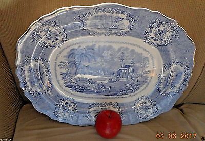 ANTIQUE 1800s HUGE RIDGWAYS PLATTER ORIENTAL STAFFORDSHIRE BLUE & WHITE TRANSFER