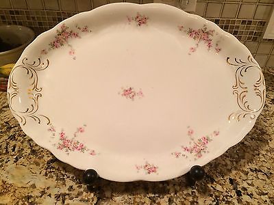 ANTIQUE WARWICK MEAT PLATTER Rose Pattern Gold Trim Free Shipping