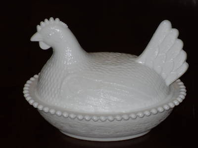 Antique Milk Glass Hen on a Nest Beaded Bowl or Dish