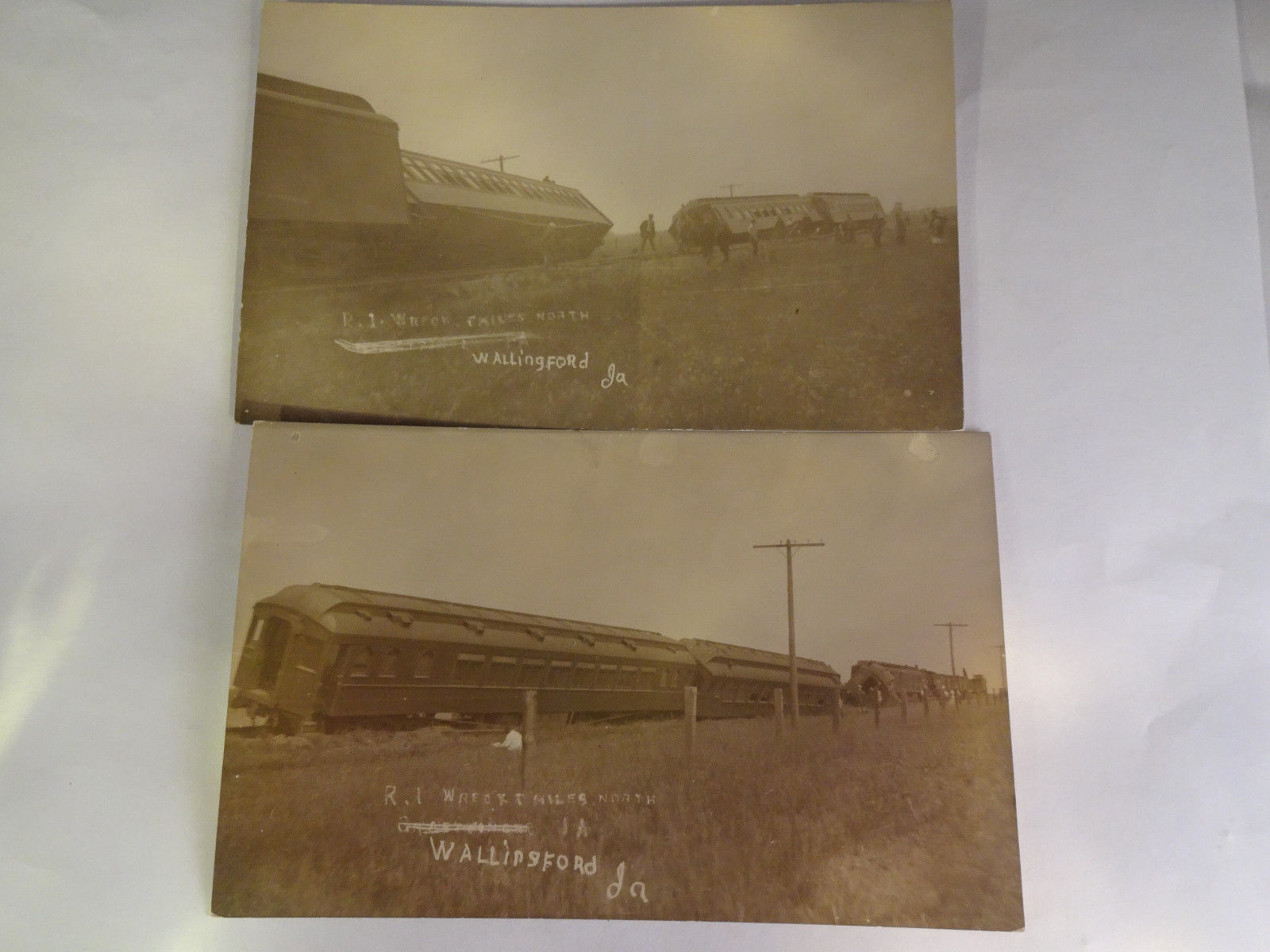 2 Vintage Early 1900s Real Photo Postcards Wallingford Iowa Train Wreck