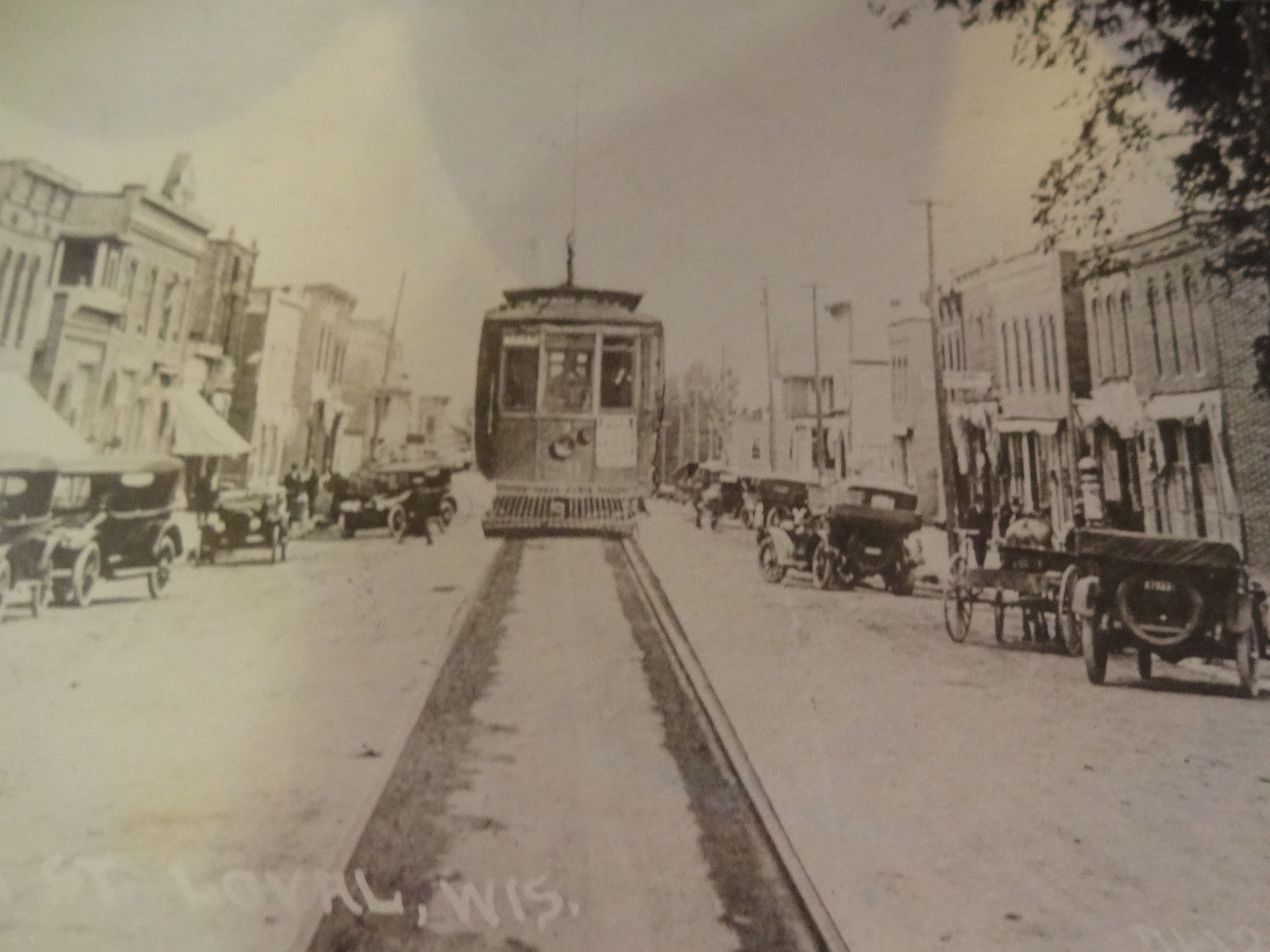 Title (ebay affiliate link): Vintage Early 1900s Main St Loyal Wisconsin Real Photo Postcard With Cable Car