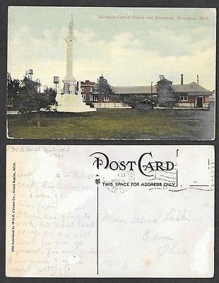 Title (ebay affiliate link): 1912 Michigan Postcard - Dowagiac - Railroad Station and Monument