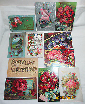 Lot 11 Vintage Birthday Postcards Lots of Beautiful Flowers Great for Crafts EXC