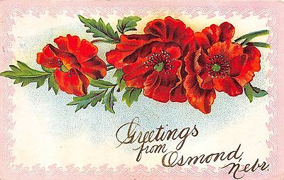 Osmond Nebraska~Orange & Red Flower Greeting~Pink Border~1910 Postcard