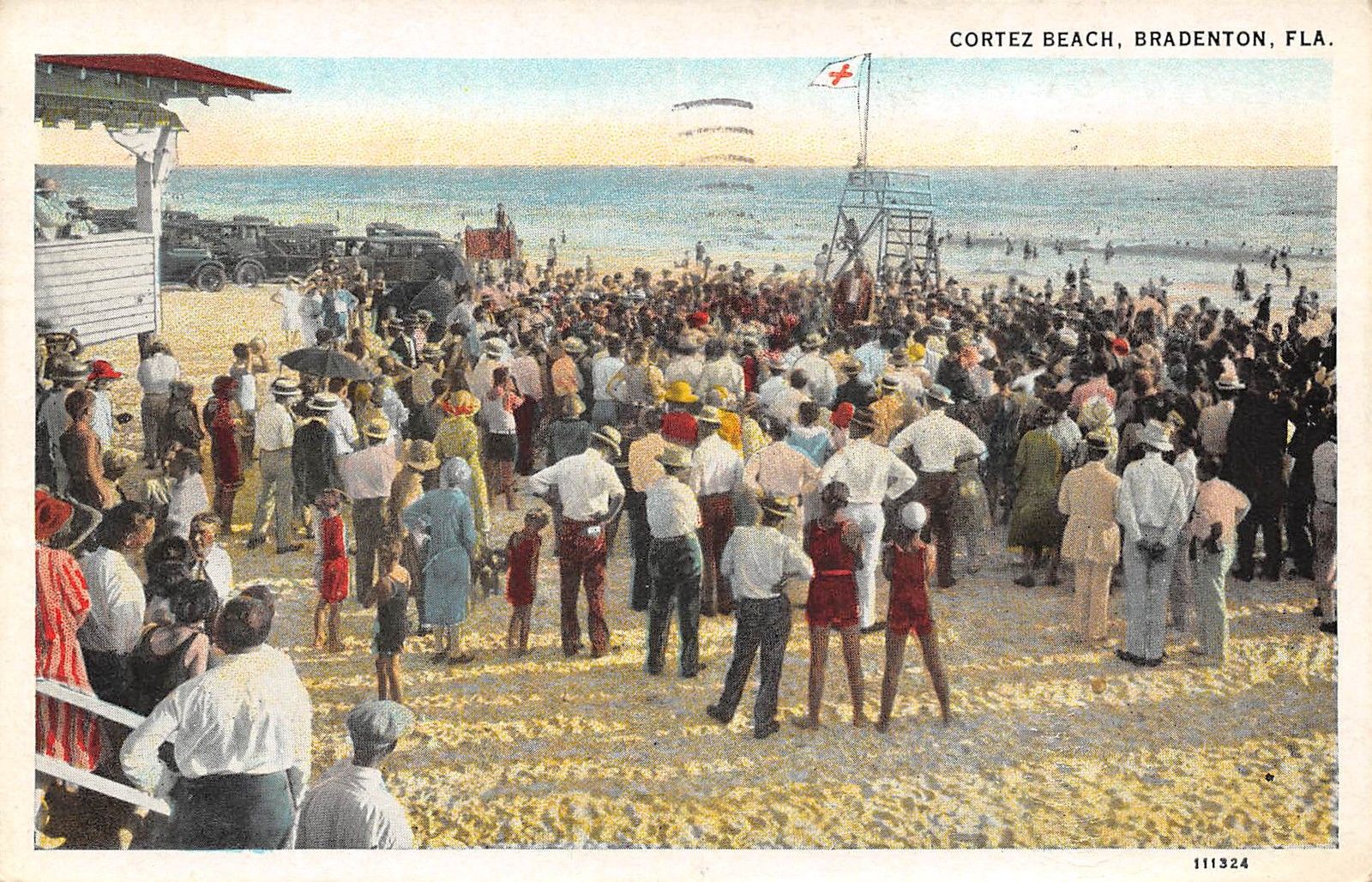 BRADENTON Florida US USA postcard Cortez Beach crowd of people 1931