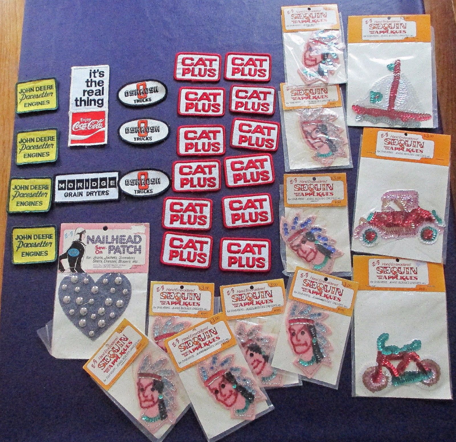 Title (ebay affiliate link): 33 Authentic Vintage Sew On Patches : John Deere; Coca Cola, Oshkosh & Cat Plus