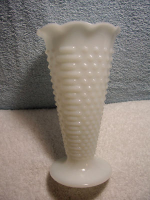 Vintage Fire King Milk Glass Hobnail Trumpet Vase