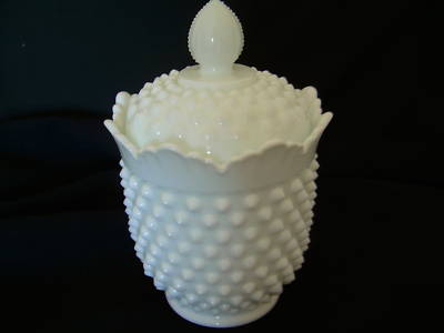 Fenton Hobnail Milk Glass Cookie Jar-Canister w Label