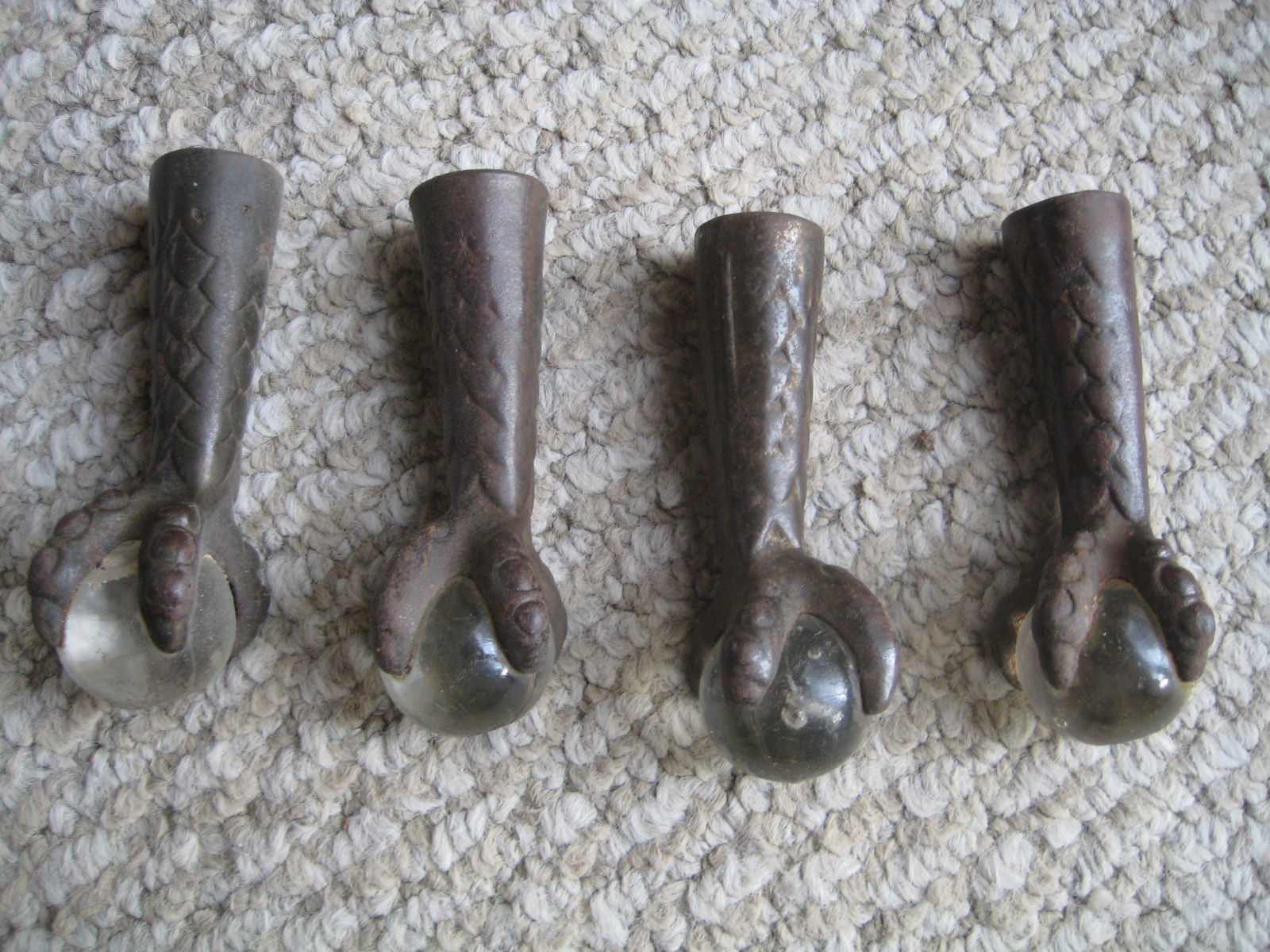 Title (ebay affiliate link): 4 ANTIQUE IRON CLAW FEET WITH GLASS BALL FOR TABLE