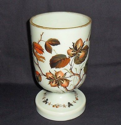 Title (ebay affiliate link): VICTORIAN OPALINE GLASS OIL LAMP BASE - HAND ENAMEL PAINTED HAZELNUTS & FOLIAGE.
