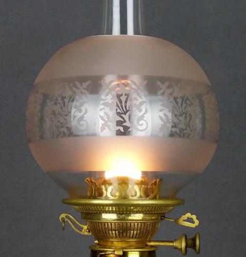 Victorian Stencil Etched Kerosene Paraffin Oil Light Lamp Duplex Ball Shade