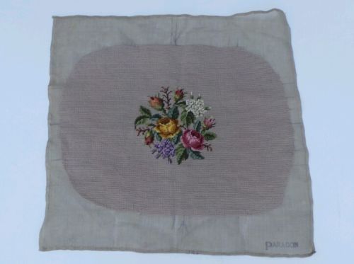 Title (ebay affiliate link): Vtg Handmade Floral Cottage Rose Incomplete Needlepoint Panel Pillow Tan Nice!