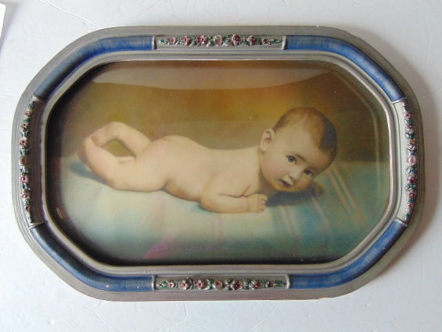 Antique ART DECO PICTURE FRAME Convex Glass 8 Sided With Baby Photo