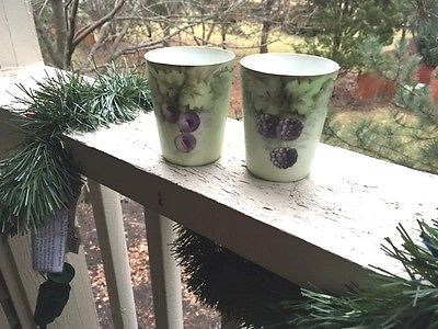 Hand-painted Set Berry Porcelain Cups- Blueberries & Blackberries- Signed E. W.