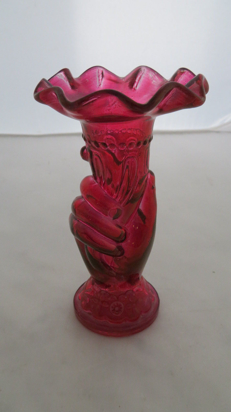 Victorian Cranberry / Flashing Glass (?) Ladies Hand Cornucopia Vase