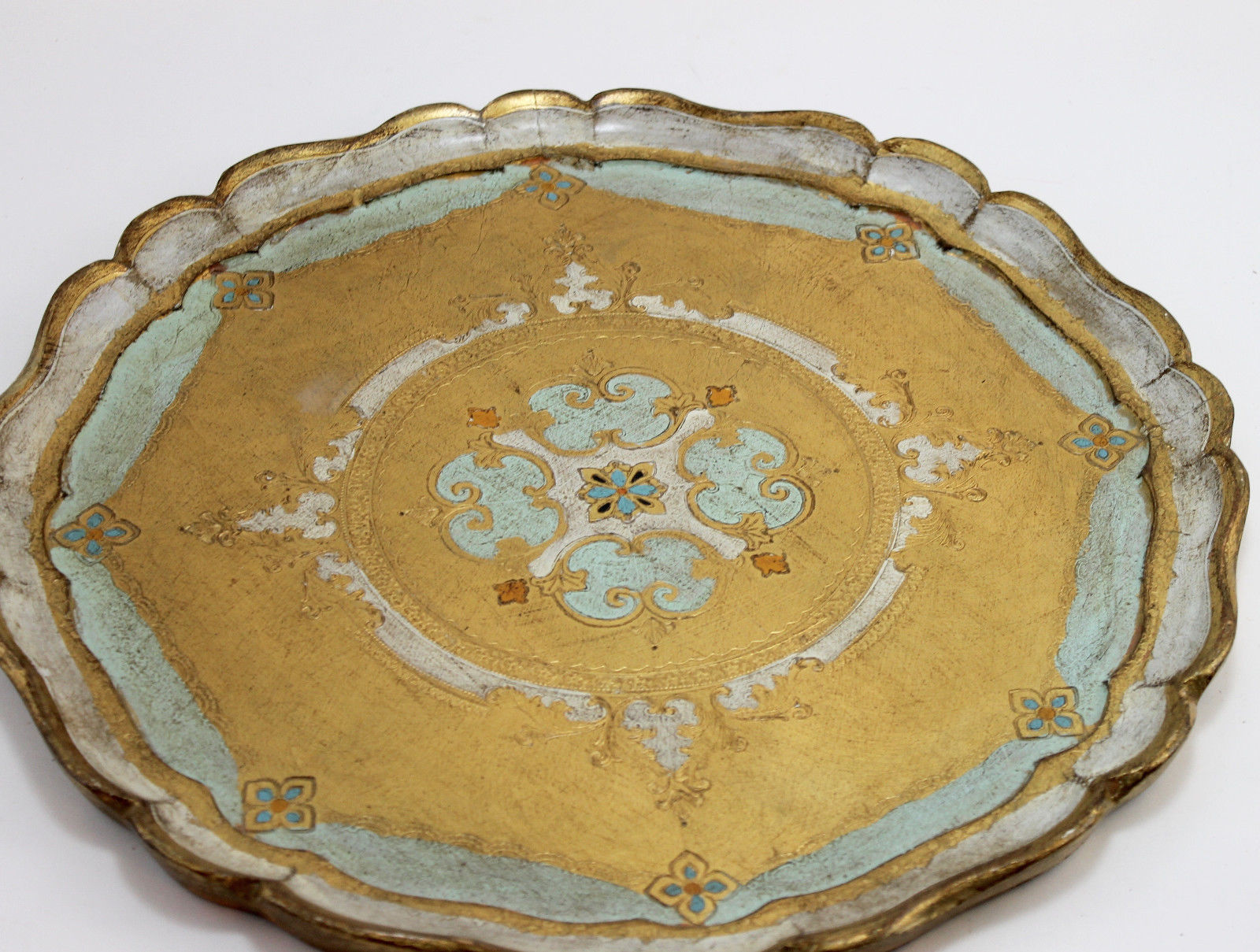 Title (ebay affiliate link): Vintage Italian Florentine Gold Gilt Round Wood Serving tray Italy-Aqua Gold
