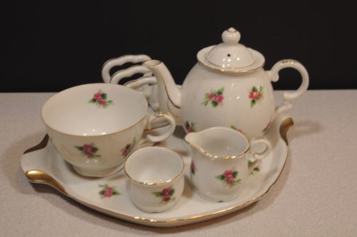 6 Piece China Breakfast Set White w. Roses