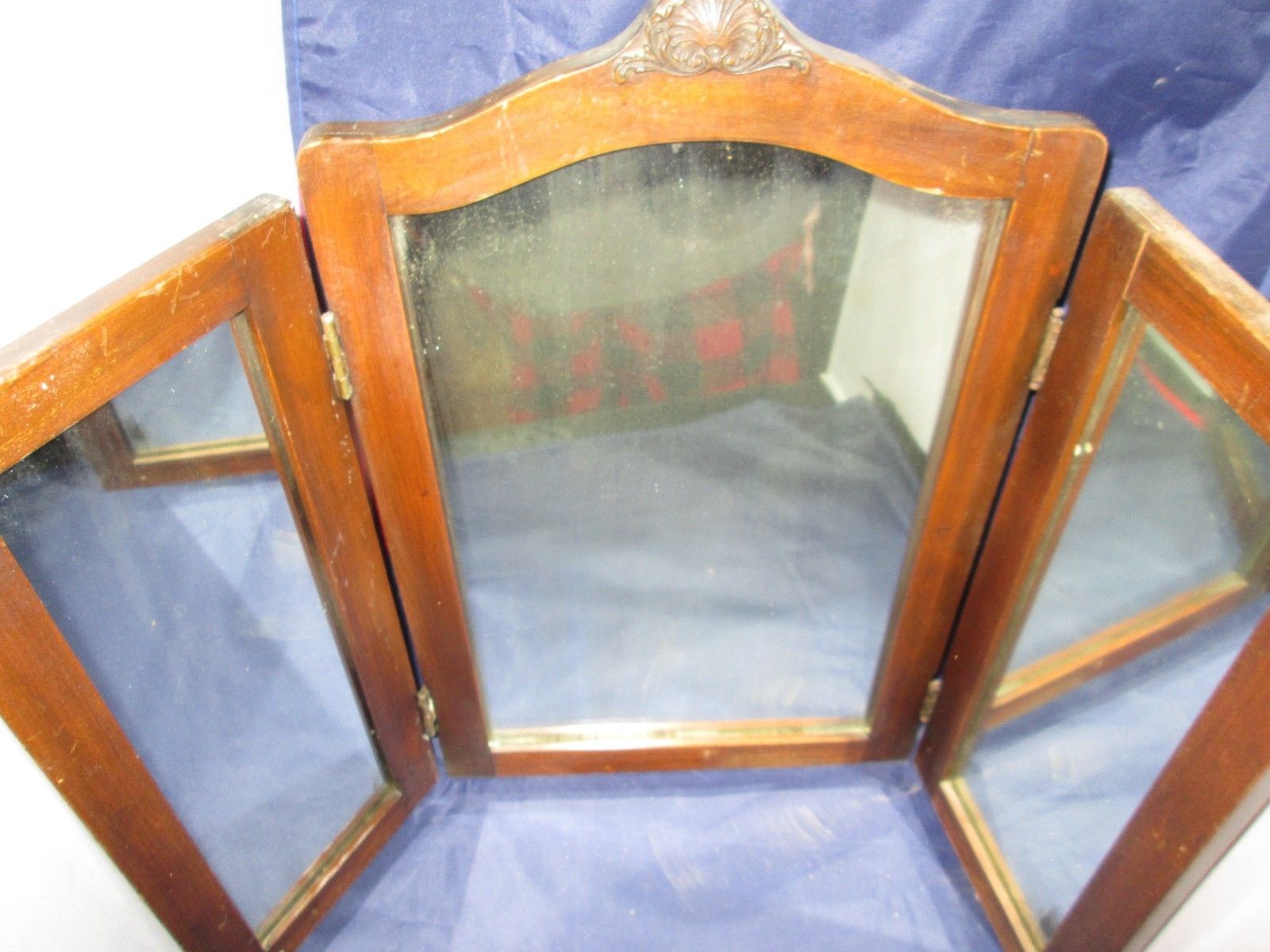 Antique 3 PANEL TRI-FOLD WOOD FRAME VANITY MIRROR Wall Hanging