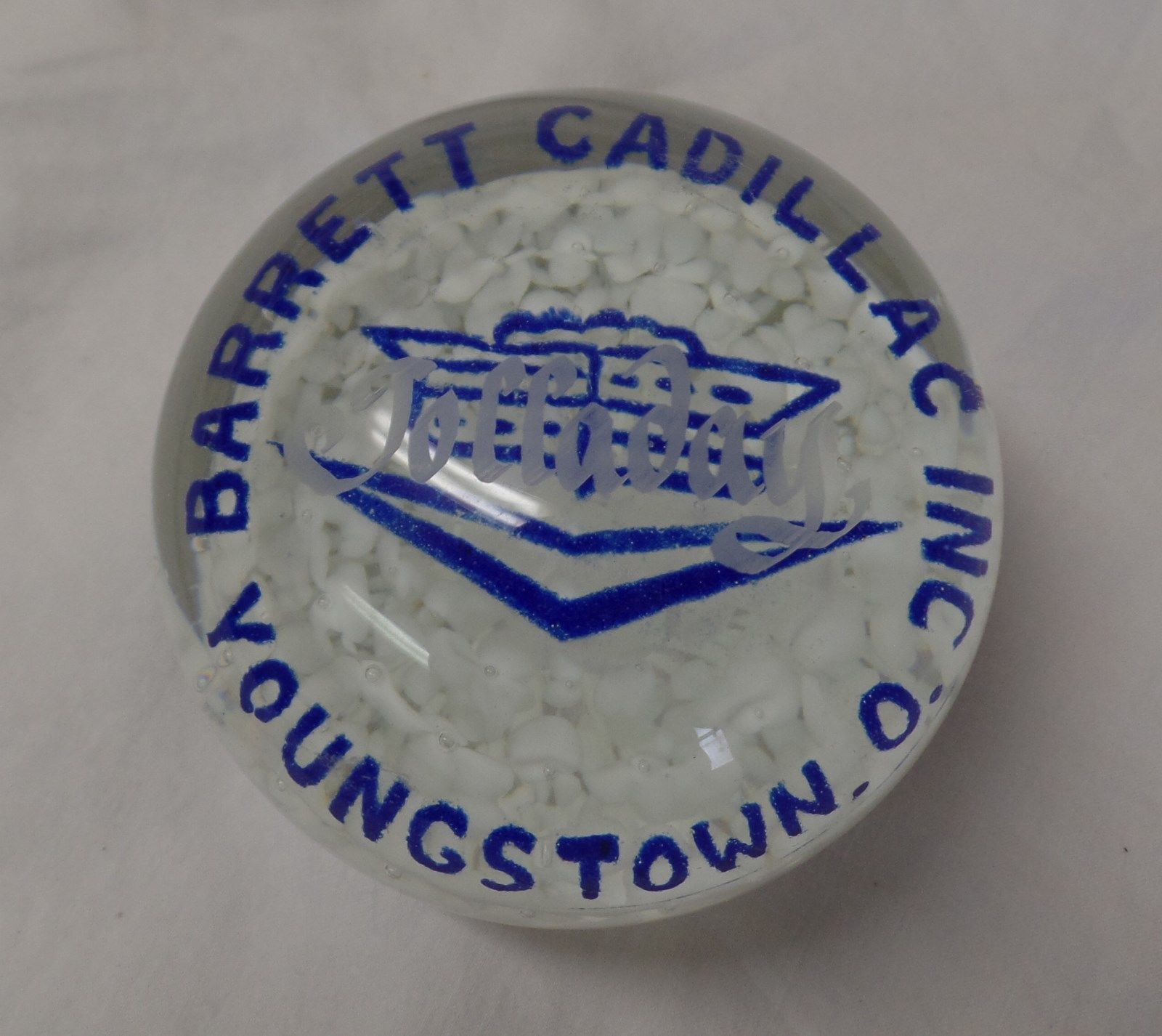 Title (ebay affiliate link): VINTAGE 1950''s BARRETT CADILLAC YOUNGSTOWN OHIO 3.75" BLUE LETTERING PAPERWEIGHT