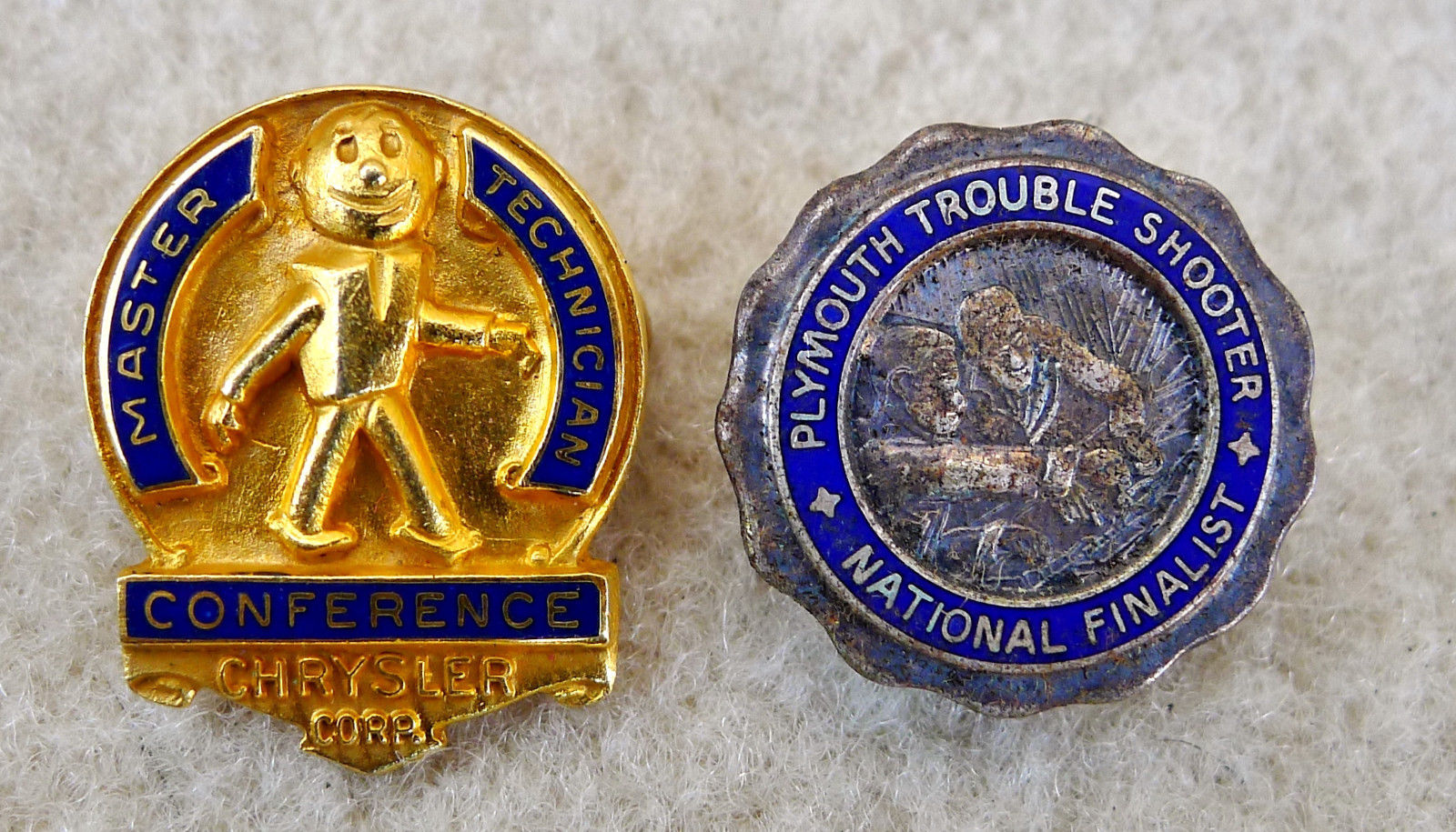 VTG 1960s CHRYSLER MASTER TECH CONFERENCE TROUBLE SHOOTING CONTEST PLYMOUTH PINS