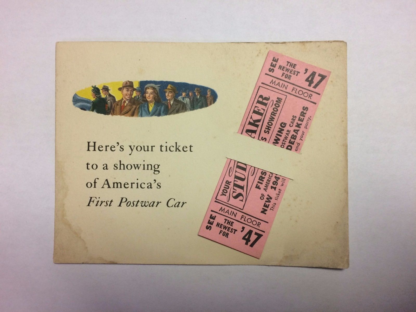 Title (ebay affiliate link): RARE 1947 Studebaker First Showing Showroom Ticket Roy Gale Motors Indianapolis