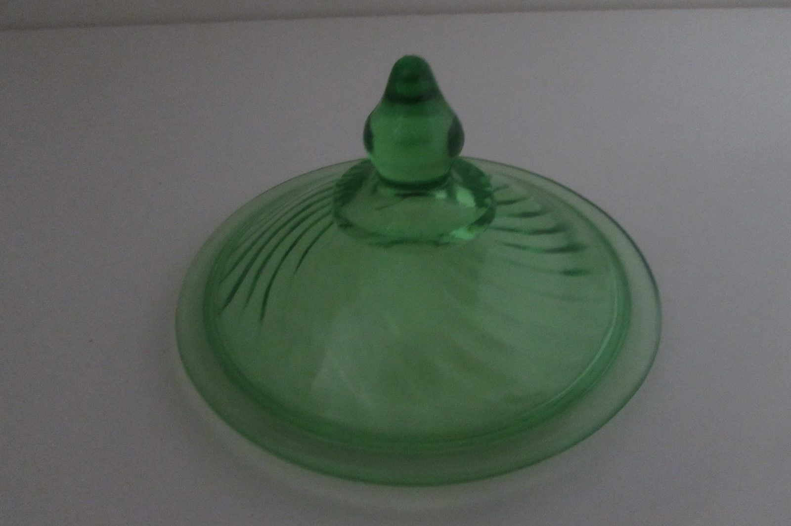 Title (ebay affiliate link): Vintage Depression Era Green Glass Lid Swirl Pattern Inner Ring 4" in Diameter