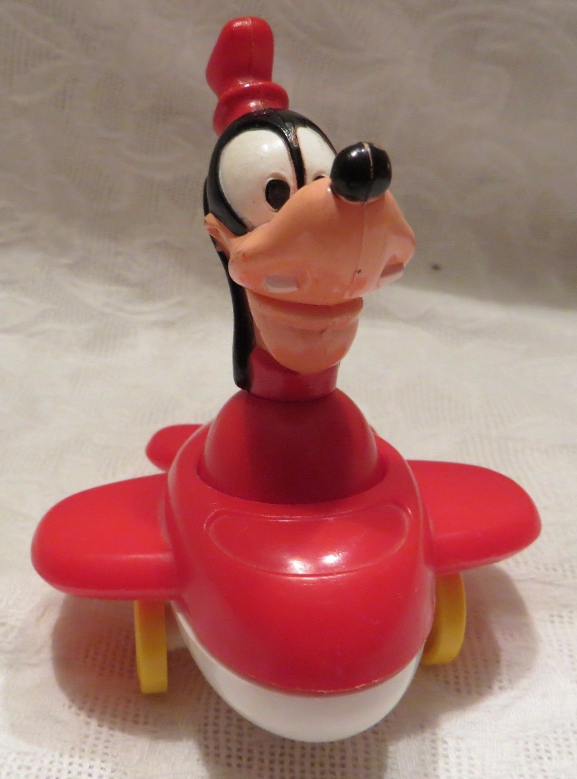 GOOFY GOES FLYING IN A RED AND WHITE PLANE