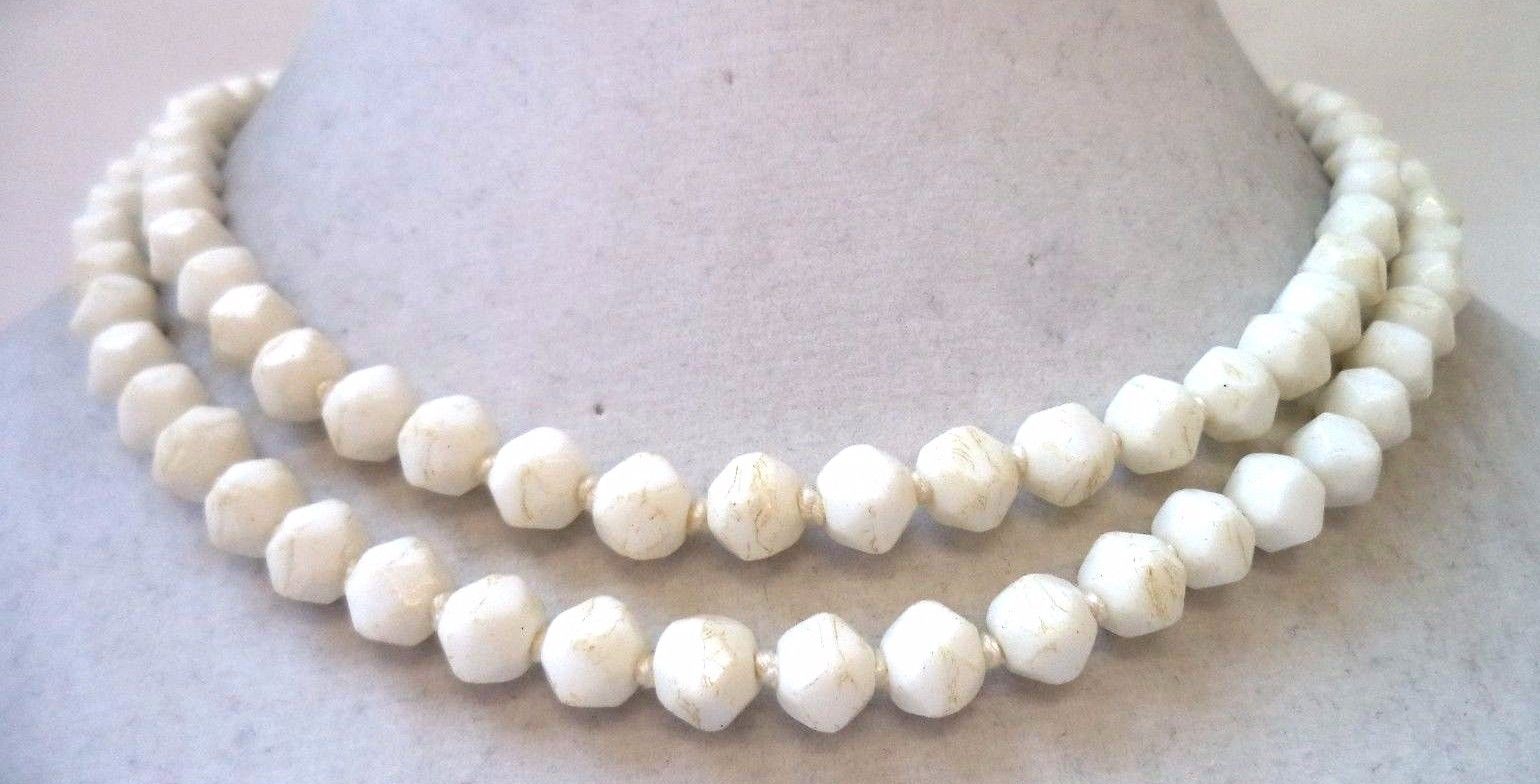 Title (ebay affiliate link): STUNNING VINTAGE ESTATE IND KNOTTED WHITE MILK GLASS 16" NECKLACE!!! 3264U