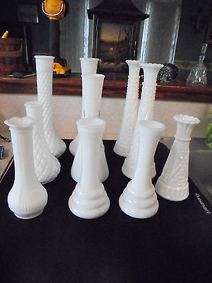 Lot of 10 White Milk Glass Bud Vases Wedding Florist