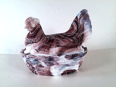 Large Purple Marble Slag Milk Glass 8 Inch Chicken Hen On Nest Covered Dish