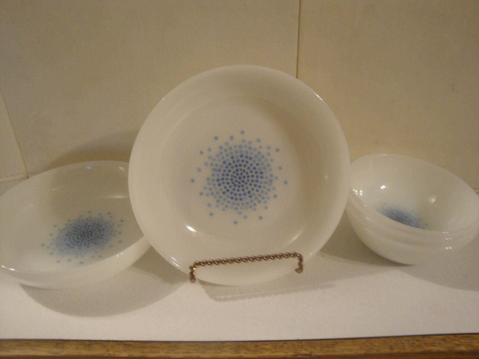 Title (ebay affiliate link): Set of 5 Vintage Fire King Milk Glass Blue Mosaic Pattern 2 Cereal 3 BERRY BOWL