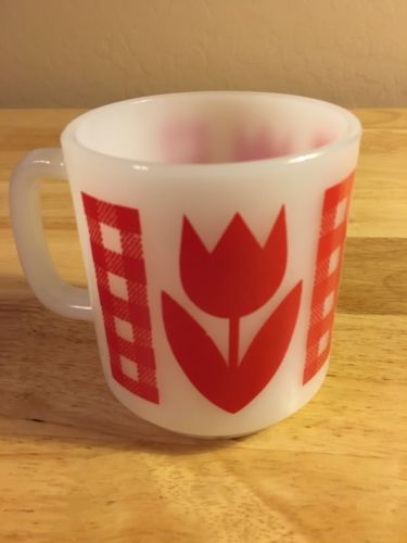 Vintage Glasbake Red Tulip Milk Glass Coffee Mug