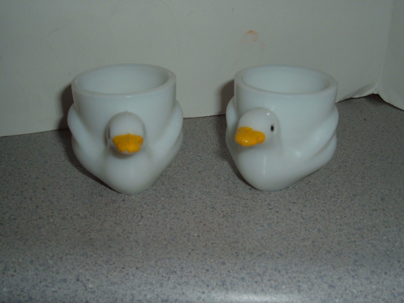 2 OPALEX MILK GLASS DUCK EGG CUPS MADE IN FRANCE MODELE DEPOSE