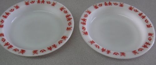 Vtg. Hazel Atlas Milk Glass Lot 2 Soup Bowls W/Red Dutch Girl Boy Windmill Trim
