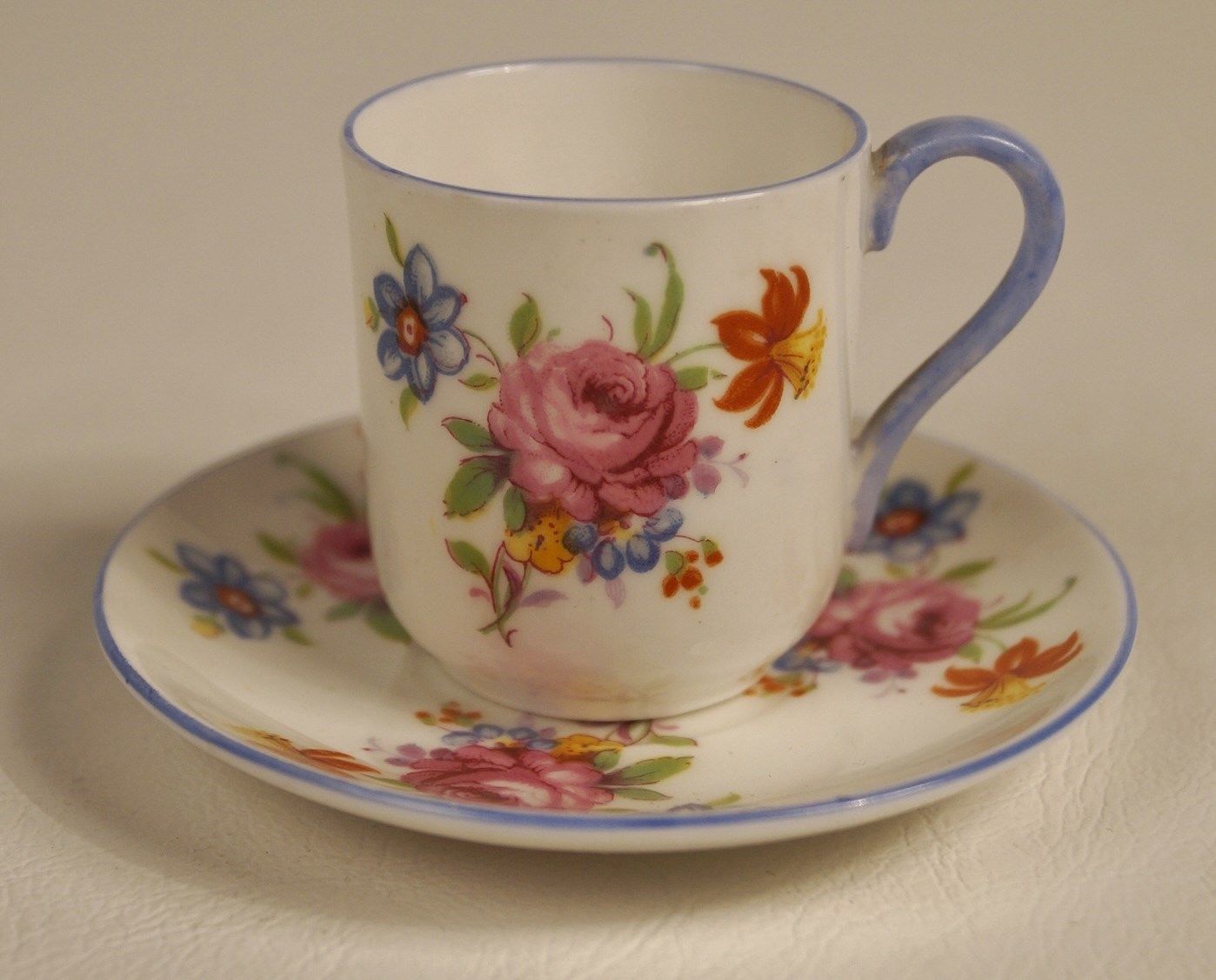 Vintage 1964/5 Shelley England Miniature Blue Floral Cup & Saucer Set #13865