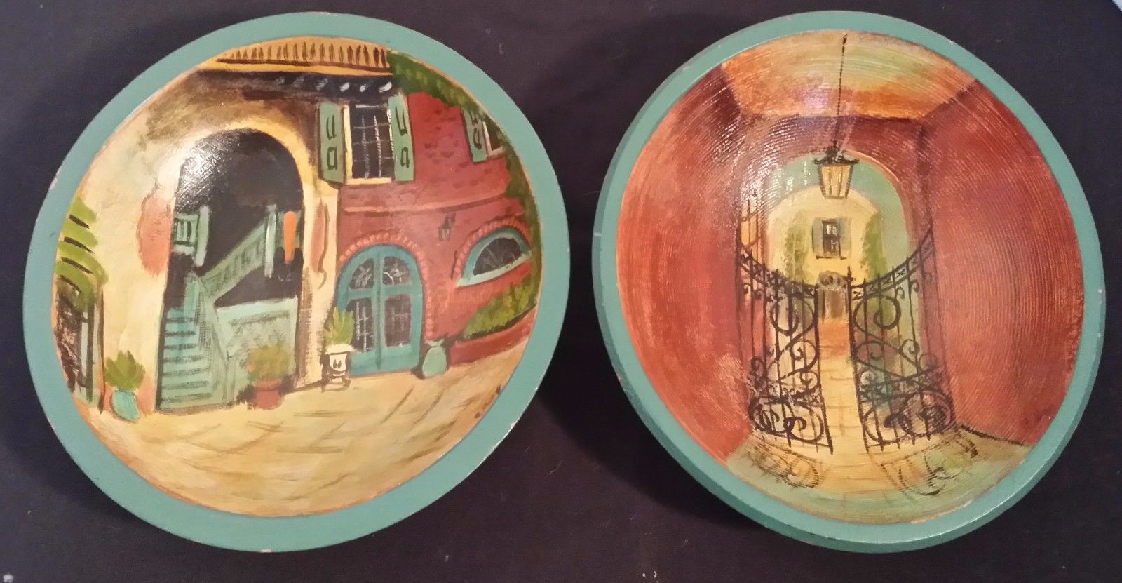 Title (ebay affiliate link): MUNISING WOOD BOWLS PRIMITIVE DOUGH ANTIQUE HAND PAINTED BLUE GREEN NEW ORLEANS