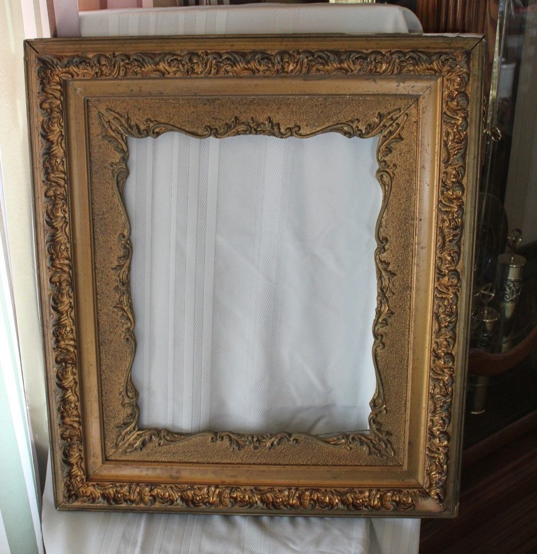 LARGE 31"x27 1/2" ANTIQUE GOLD GILT VINTAGE GESSO PICTURE FRAME